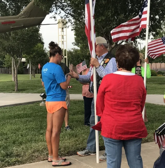 Day 38 was a much-needed rest day in Amarillo, or sorry, “Amarilla”. A friend of mine had reached out to a friend of hers, Caralee, who arranged an entire day of pampering and rest. Spa treatment, massage, lunch at an amazing Italian restaurant, shoes and running gear from Get Fit Amarillo – I was beginning to see what people were meaning about Texas hospitality. Day 39 we hit Friona, the Cheeseburger capital of Texas. I thought about asking for a tofu burger but figured that might be considered an insult, so I got the local Mexican food. We had dinner and tasty ice with the mayor and then headed into Hereford, home of the whitefaces (it’s a cow not some sort of weird racist thing). Along the road I ran into Merrill, a local welder who rode his bike to say hello. I got 8 miles in with an Amarillo resident, and another new friend. I was presented with some amazing mementos from local veterans’ organizations (who skipped Friday night football to welcome me – how about that!?) I hit a pretty good stride on day 43, through the town of White Deer which has at least four antique shops for its 100 or so residents. I picked out a treasure box to hold all the treasures (aka things we find on the side of the road). We finished up at the Pampa VFW where we shared beers and bawdy jokes with the members. Day 44 and 45 were spent with the Gold Star family in Canadian, TX. We got a full tour of the town, an interview with the local paper, and my very first zipline! Their land was beautiful, their home inviting, and their spirit encouraging. They even bestowed upon us honorary Texan citizenship. Day 46 meant crossing into Oklahoma, windy with rolling hills for the next few days – and more gracious people. We stopped in Hinton, OK for a meet and greet and dinner and couldn’t even pay for our dinner. We made it to Oklahoma City, where my recruiter joined me for a couple miles and we hit the halfway point. After a chair donation and get together with the local chapter of Ainsley’s Angels we had some much-deserved pizza and beer, where I met a woman who had just finished walking across the country – see there are plenty of weirdos out there. She was heading back across the country and stopped in OKC to say hello to some folks who had taken her and her dog in for a couple weeks (she picked up the pooch somewhere in Arkansas). Amazing.